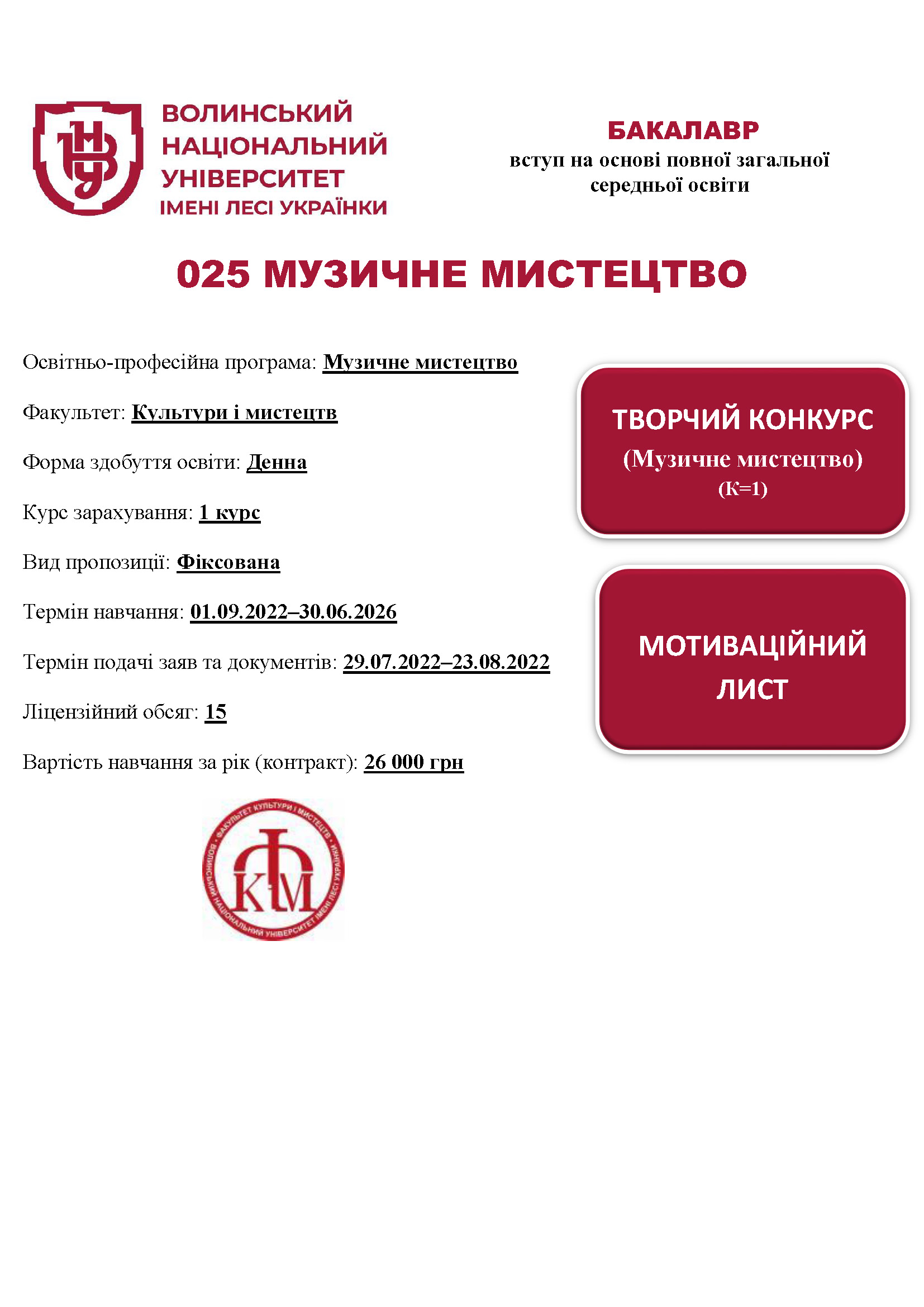 СПЕЦІАЛЬНІСТЬ 025 МУЗИЧНЕ МИСТЕЦТВО, освітня програма «Музичне мистецтво»