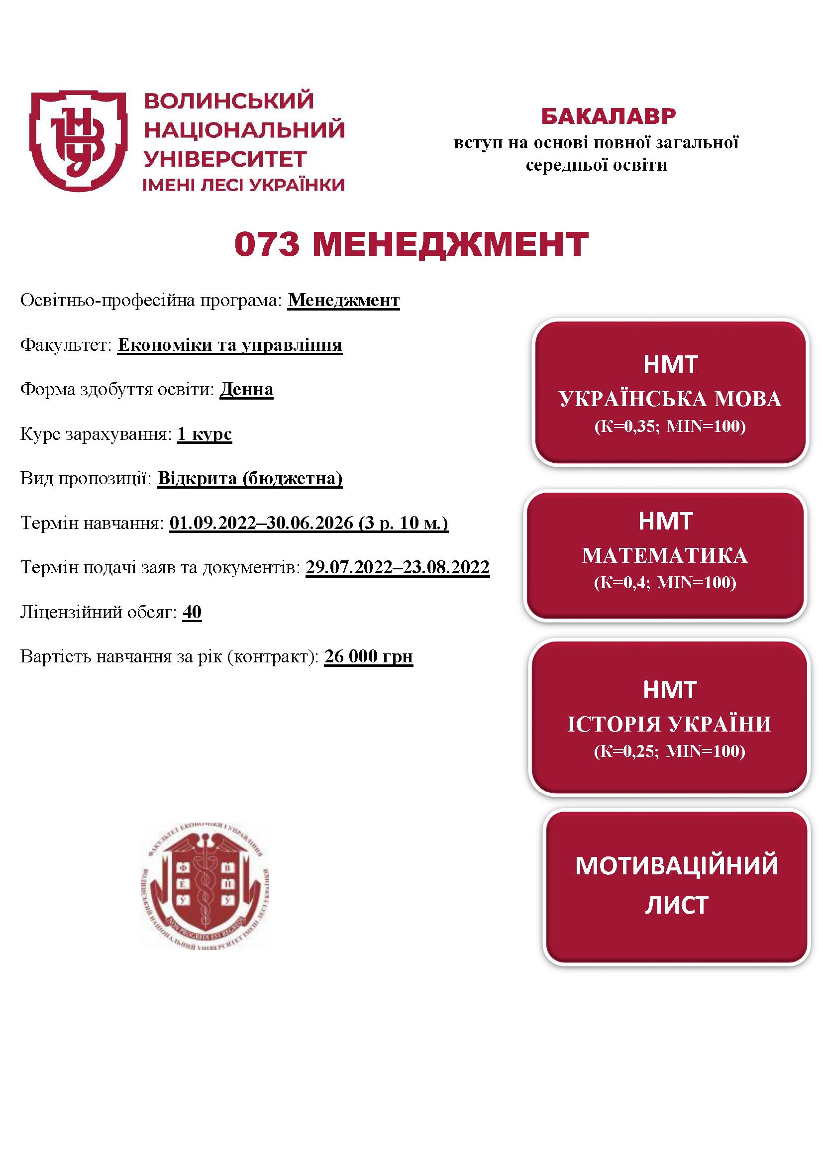 Спеціальність 073 МЕНЕДЖМЕНТ, освітня програма «Менеджмент»