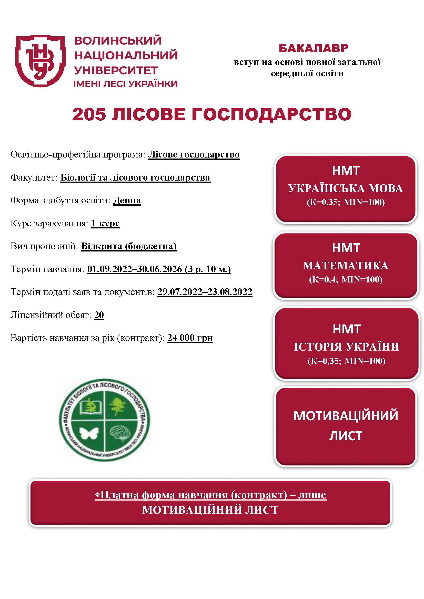 Спеціальність 205 ЛІСОВЕ ГОСПОДАРСТВО, освітня програма «Лісове господарство»