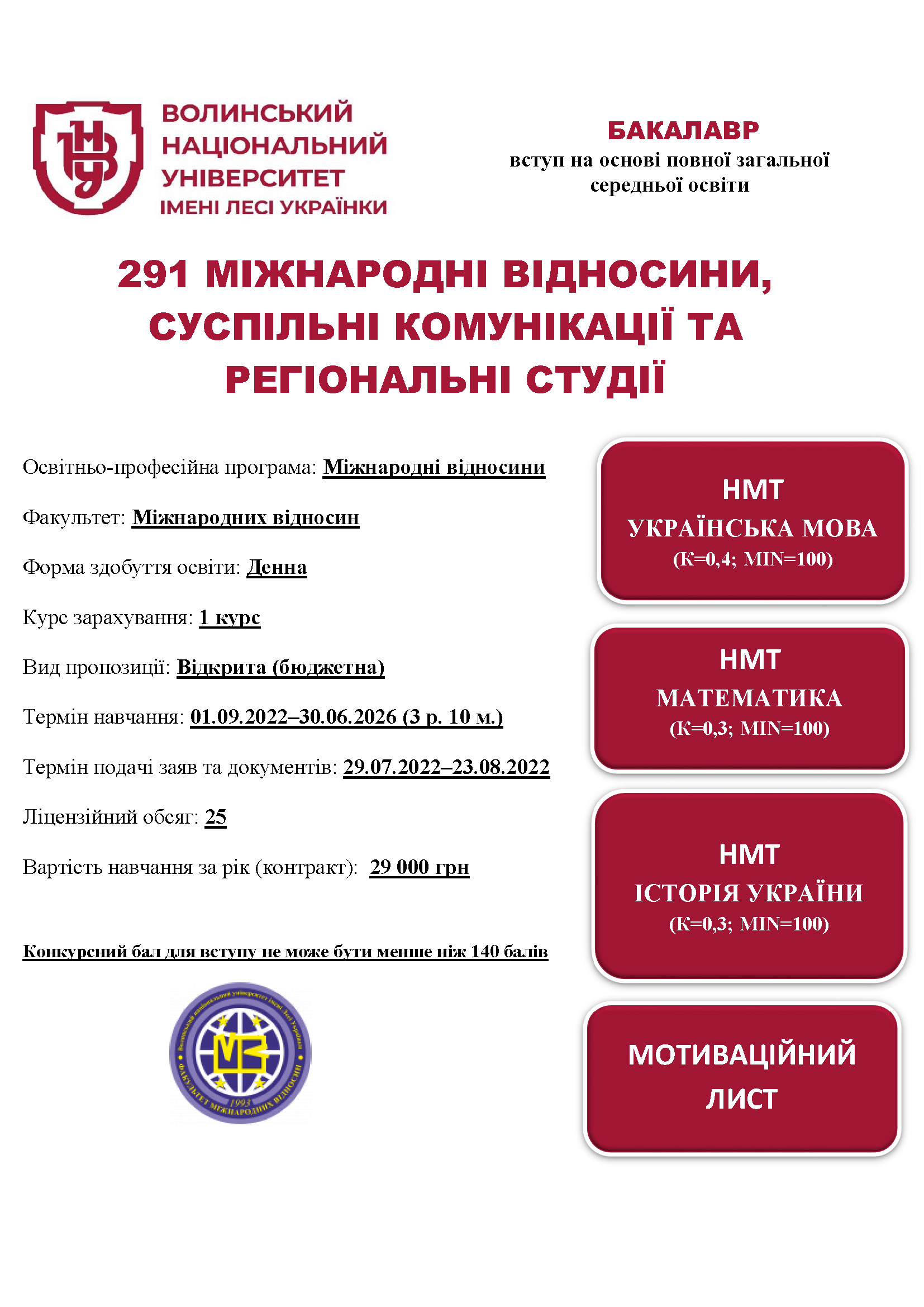 СПЕЦІАЛЬНІСТЬ 291 МІЖНАРОДНІ ВІДНОСИНИ, СУСПІЛЬНІ КОМУНІКАЦІЇ ТА РЕГІОНАЛЬНІ СТУДІЇ, освітня програма «Міжнародні відносини»