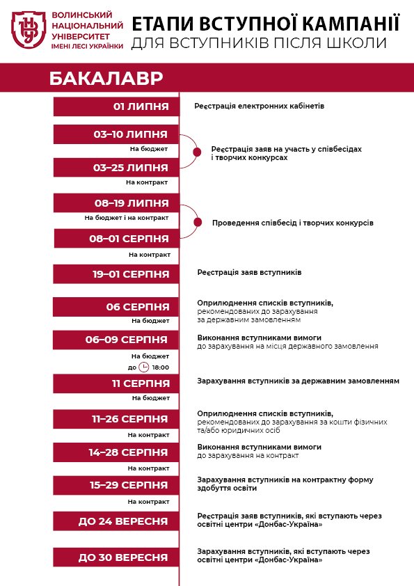 Терміни вступної кампанії 2025 – Приймальна комісія Волинського національного університету імені Лесі Українки