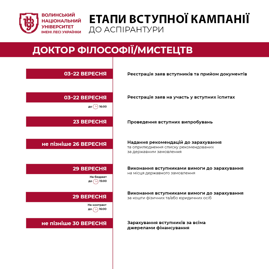 Аспірантура та докторантура – Приймальна комісія Волинського національного університету імені Лесі Українки