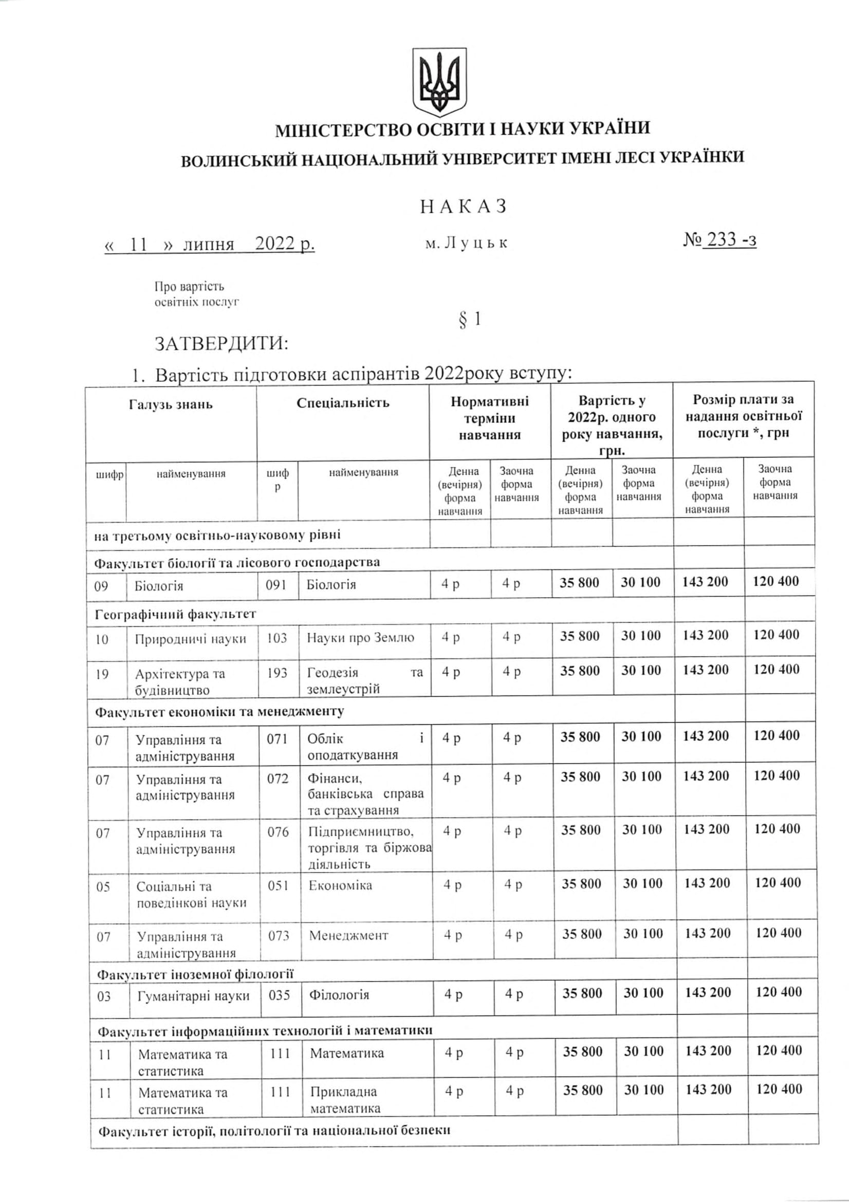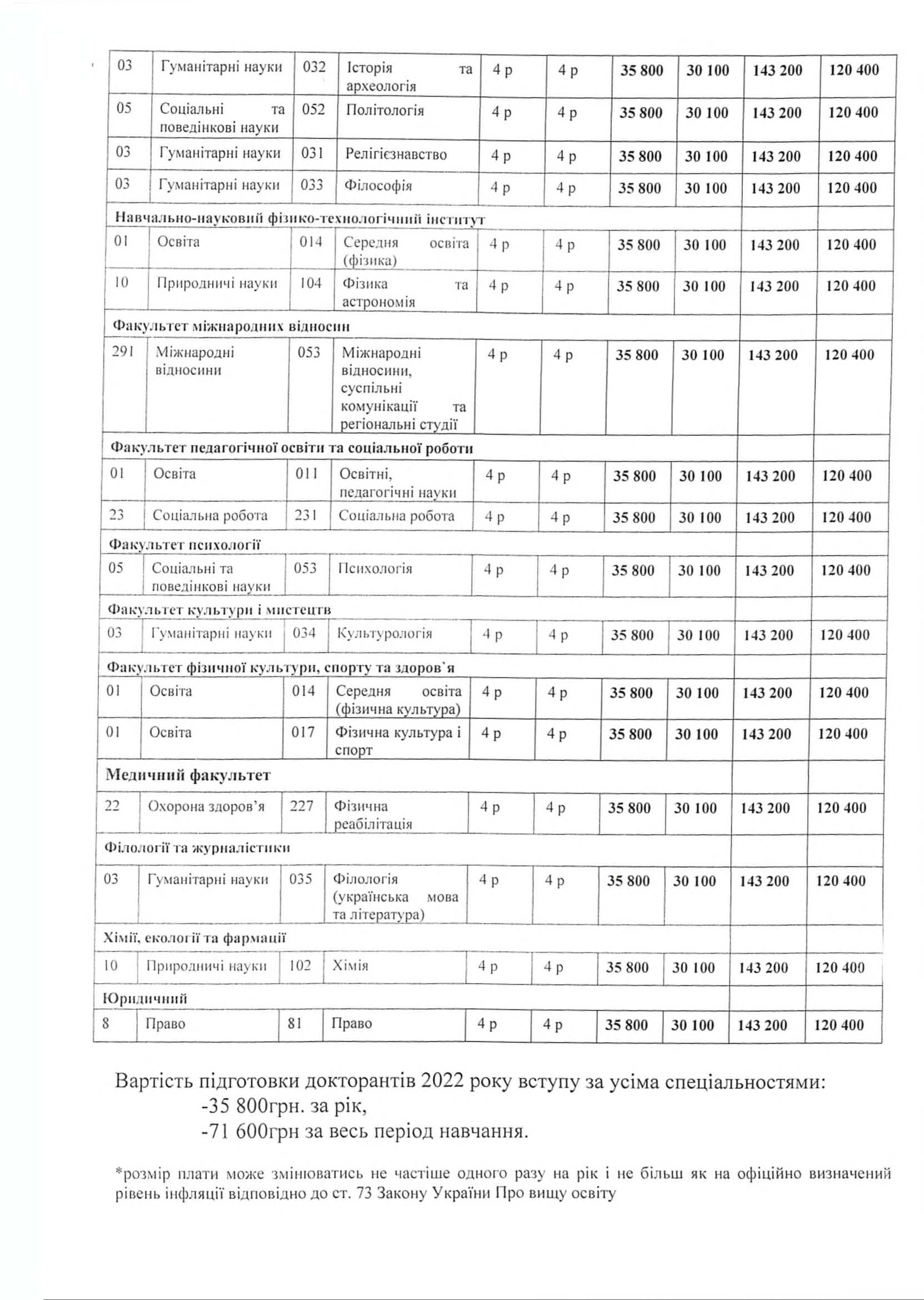 Вартість навчання в аспірантурі