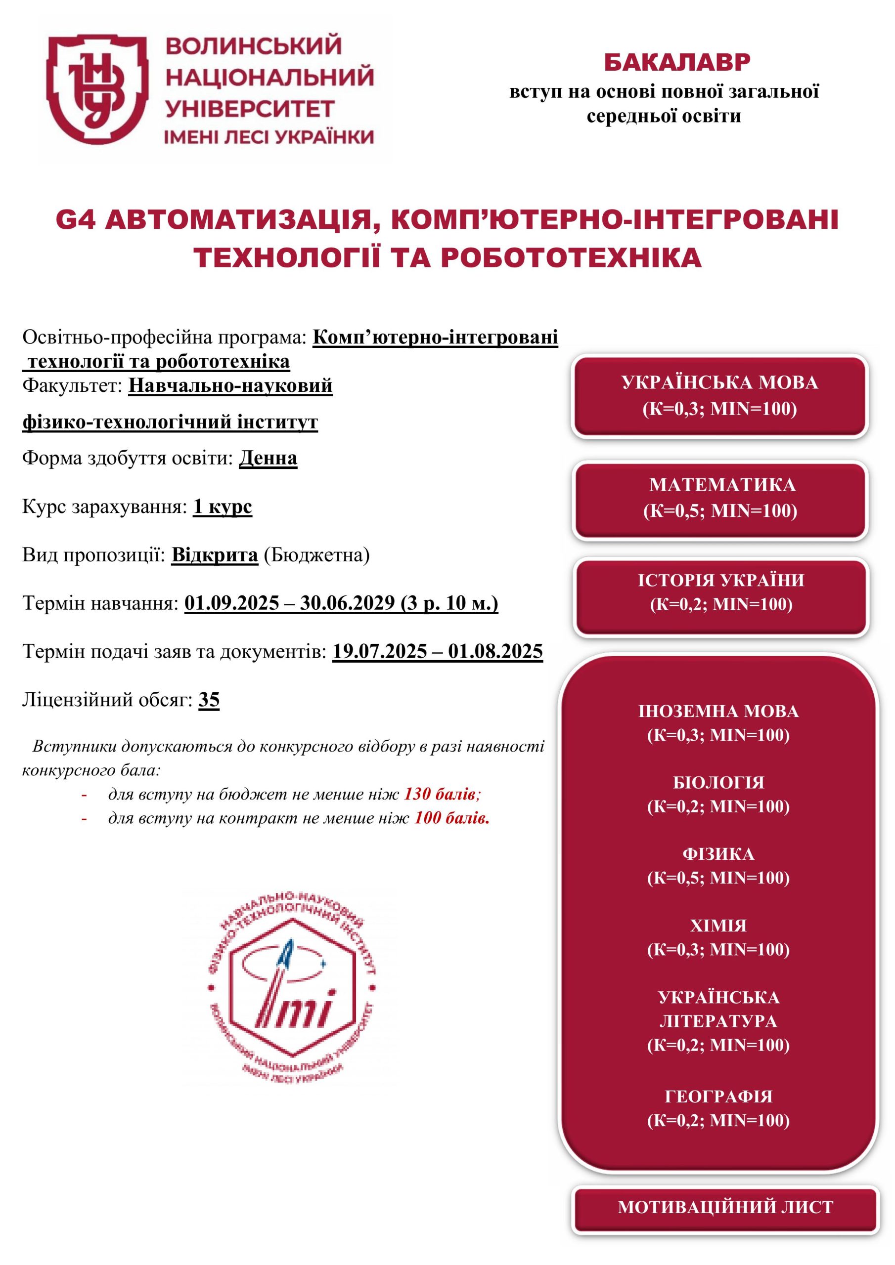 G4 Автоматизація, комп’ютерно-інтегровані технології та робототехніка/ Комп’ютерно-інтегровані технології та робототехніка