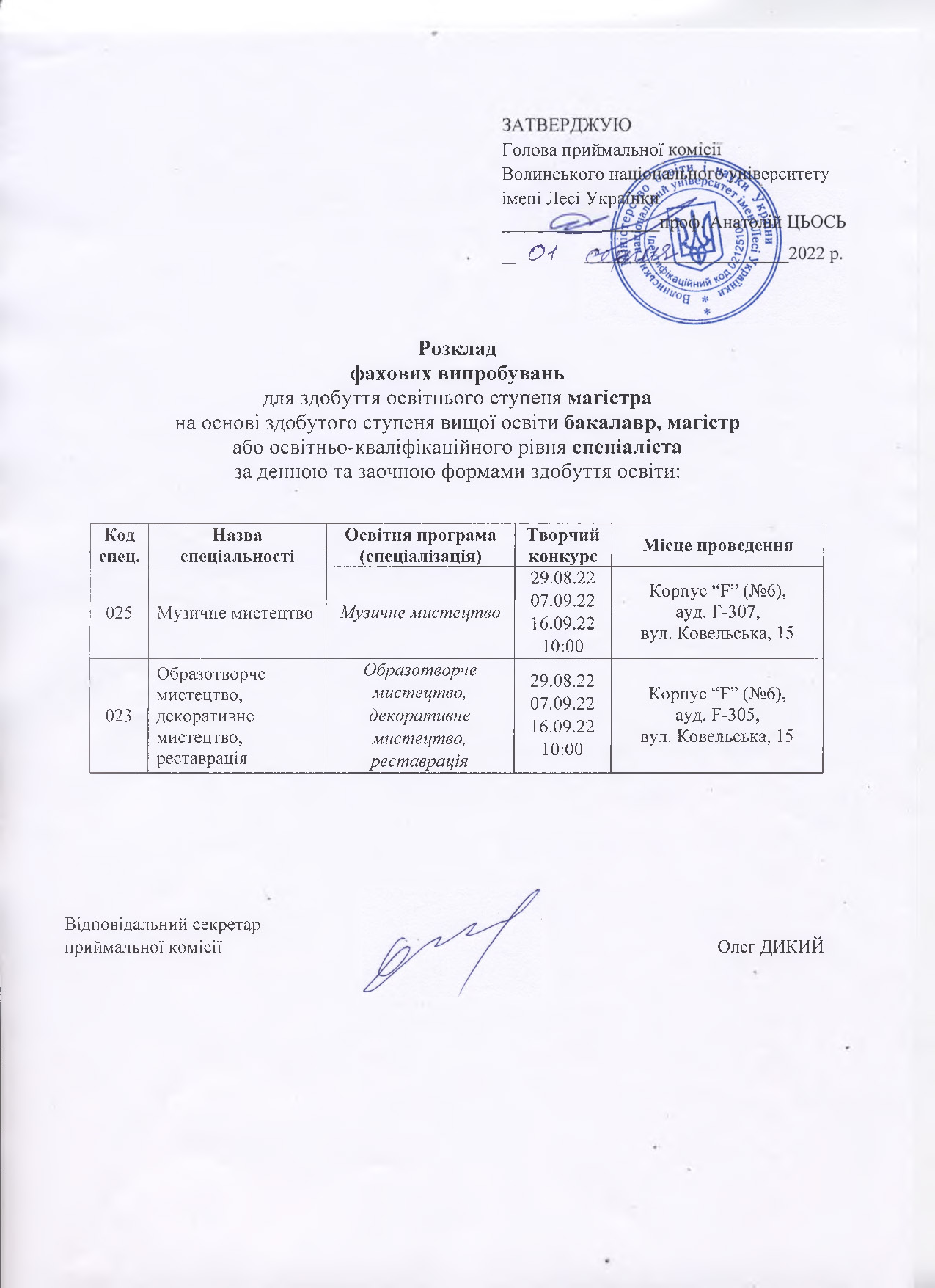 Розклад фахових випробувань для вступників до магістратури